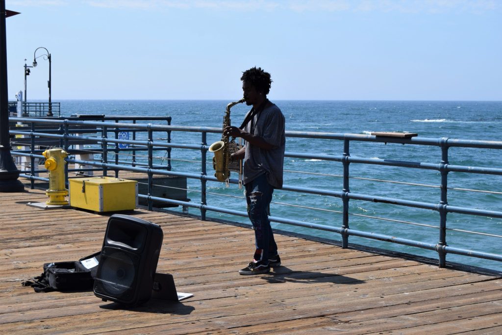 Loppupäivän vietimme Santa Monican Pierillä, jossa sielläkin riitti ihailtavaa Bubba Gump Shrimpistä turkoosina kimaltavaan mereen. Jokainen Pierillä esiintynyt taiteilija oli toinen toistaan lahjakkaampi – jopa se humalassa heilunut karaoke-Erkki oli kaikessa huonoudessaan hyvä. (Alla oleva saksofonisti ei liity tapaukseen.)