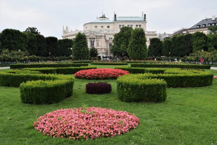 Burgtheaterin vieressä sijaitsee Volksgarten, joka on yksi Ringstrassen monista puistoista. Ympäristöönsä nähden yllättävän vaatimaton puisto on tunnettu erityisesti ruusuistaan, joiden parhaat päivät olivat kyllä jo menneet meidän vieraillessamme siellä heinäkuun alussa.